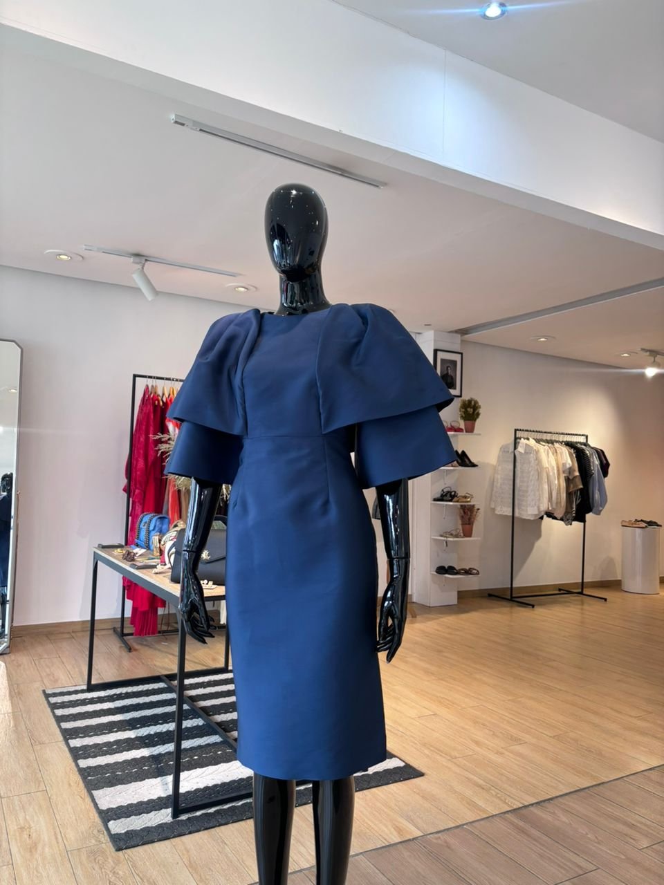 Soyez le premier à laisser votre avis sur “Robe Midi à Manches Volantées – Bleu Marine et Satiné”